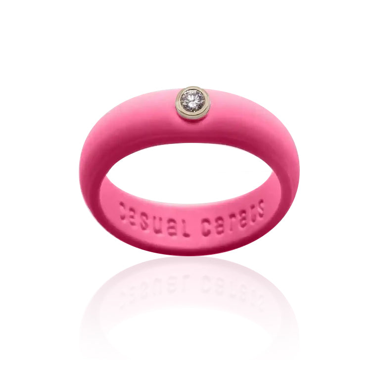 Gemstone settings work with silicone bands. This combination allows you to wear birthstones, diamonds, or other precious gems during activities where traditional settings would trap moisture. The metal component provides structural integrity for the stone, while silicone delivers flexibility and water resistance.