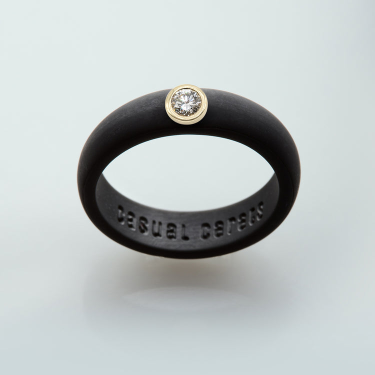 Silicone band 5.7mm wide set with a 14K yellow or white gold tubing that is set with one full cut diamond