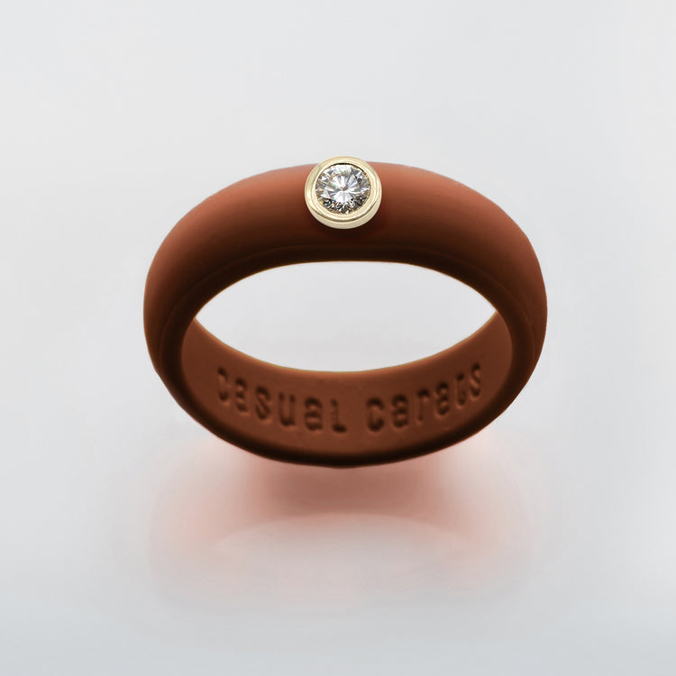 Silicone band 5.7mm wide set with a 14K yellow or white gold tubing that is set with one full cut diamond