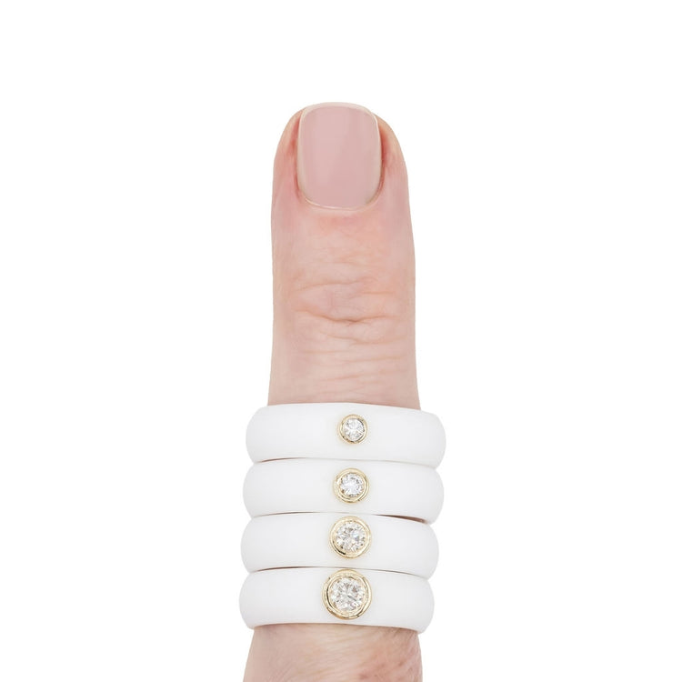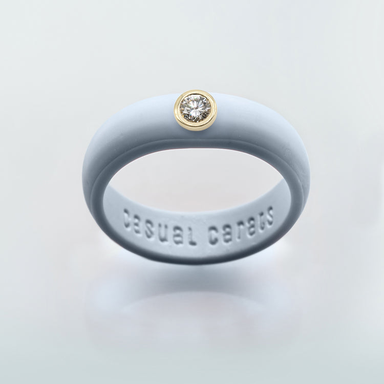Silicone band 5.7mm wide set with a 14K yellow or white gold tubing that is set with one full cut diamond