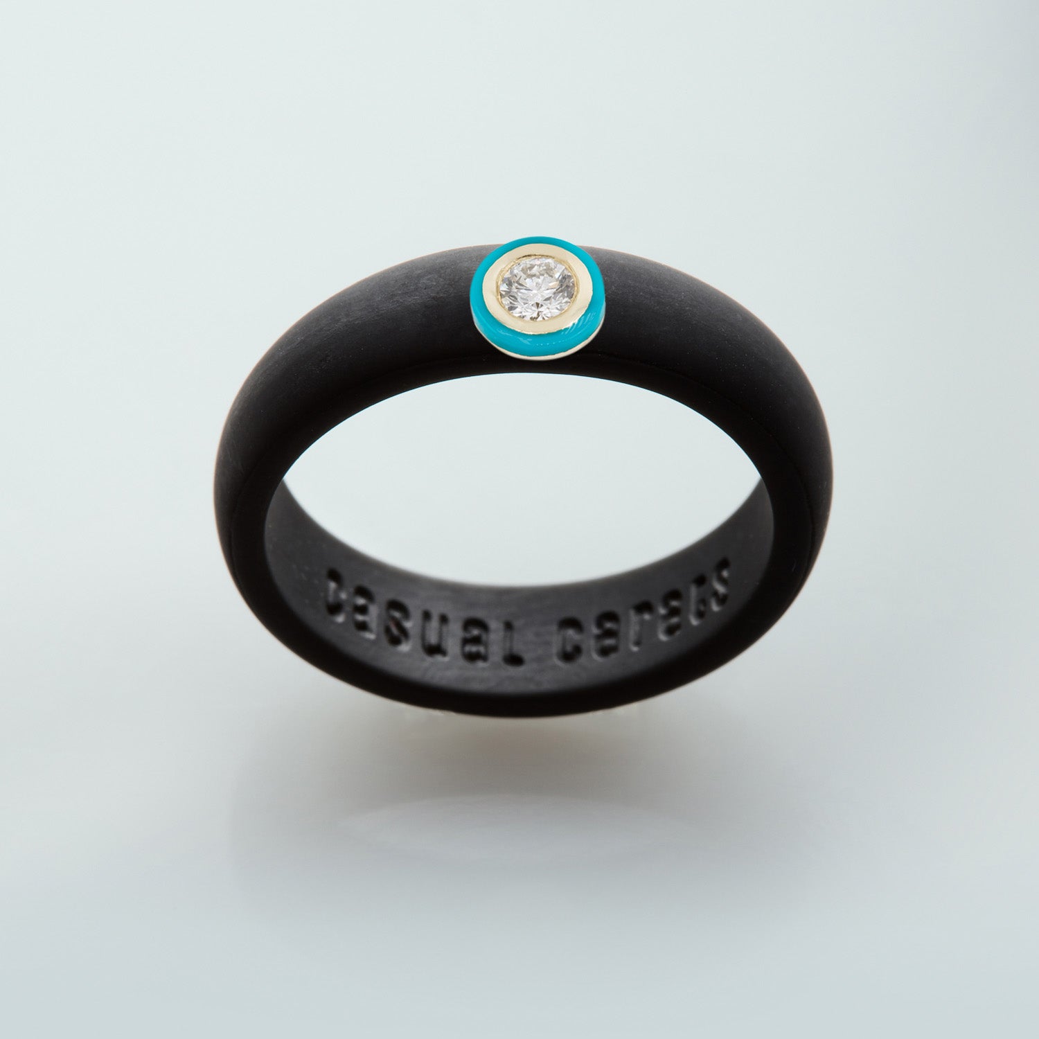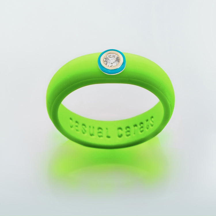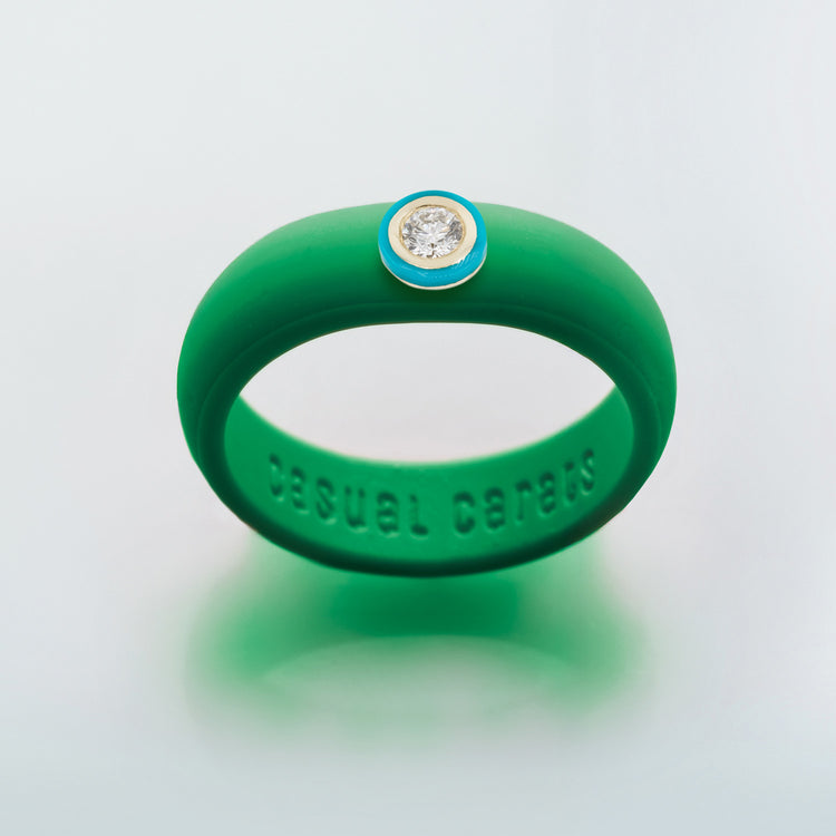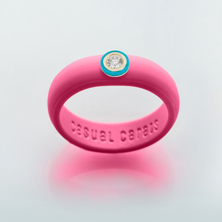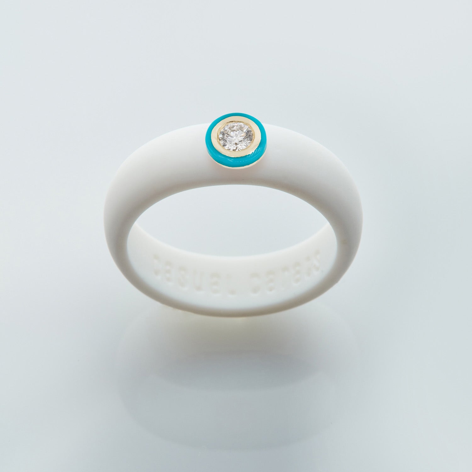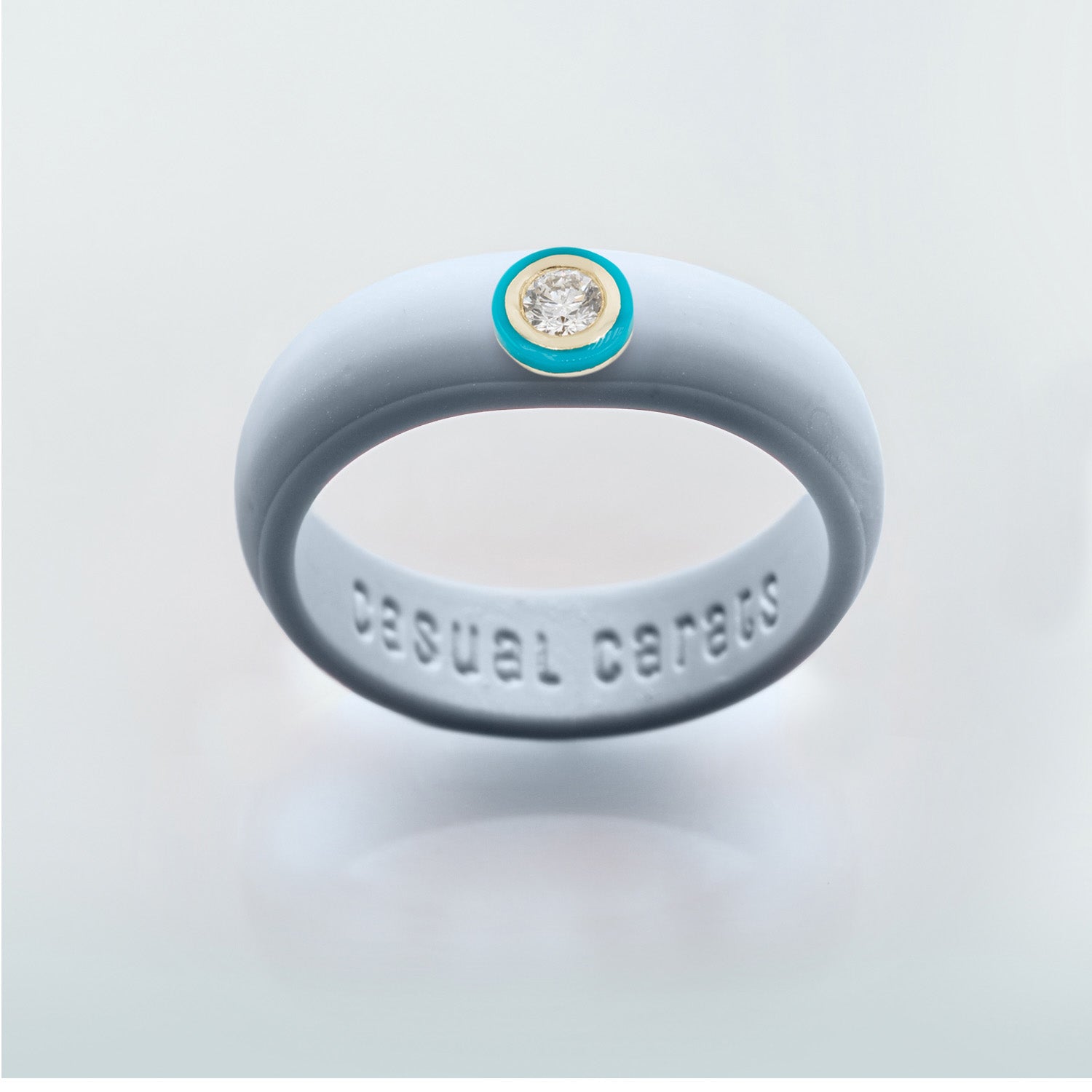 Indulge in luxurious style with our 14K Turquoise Colored Bezel- a dynamic and chic addition to any outfit. Elevate your look with a sleek ceramic lining, highlighting the dazzling diamond and adding a touch of modern sophistication. Personalize your style with a choice of 7 vibrant ceramic colors and 30 striking silicone colors.