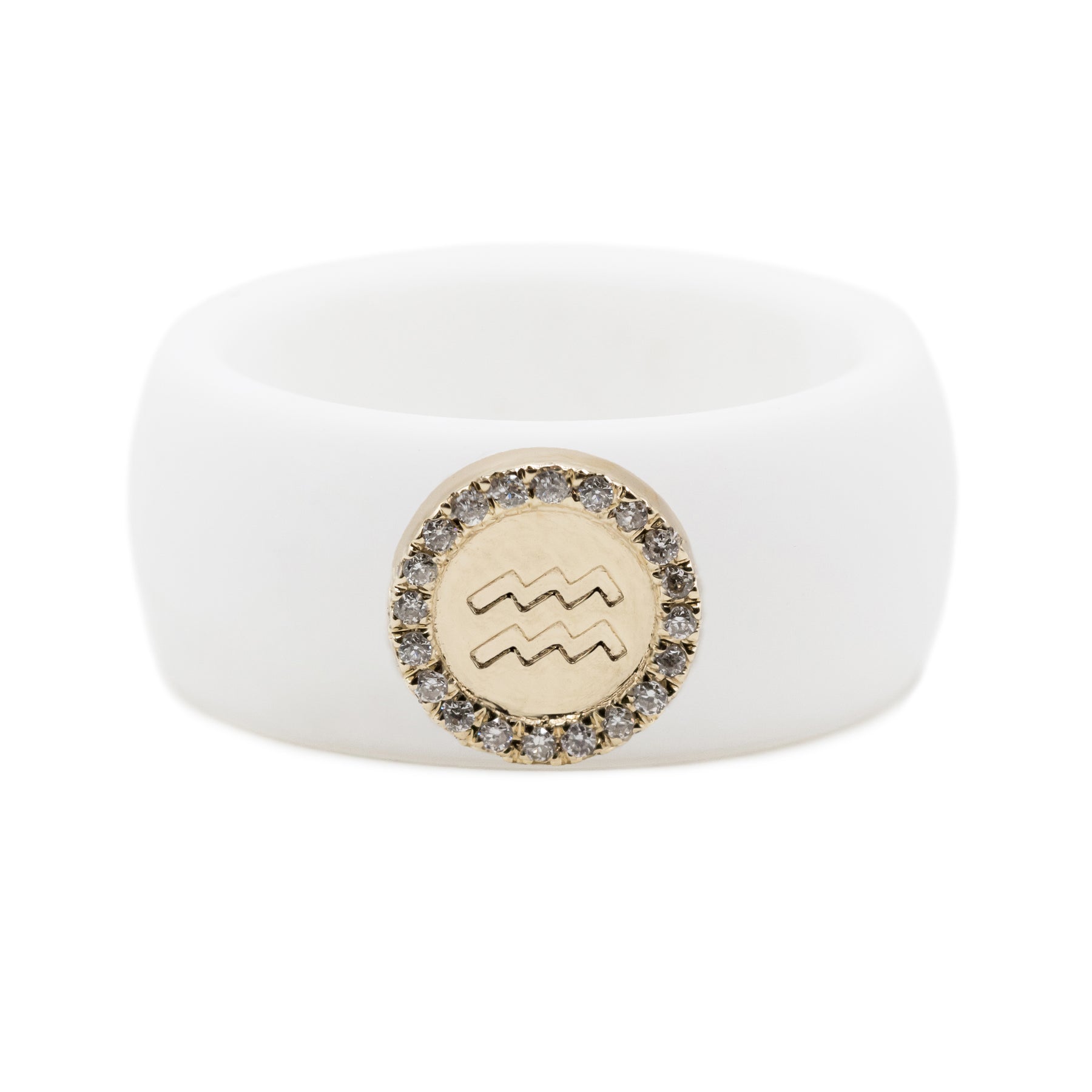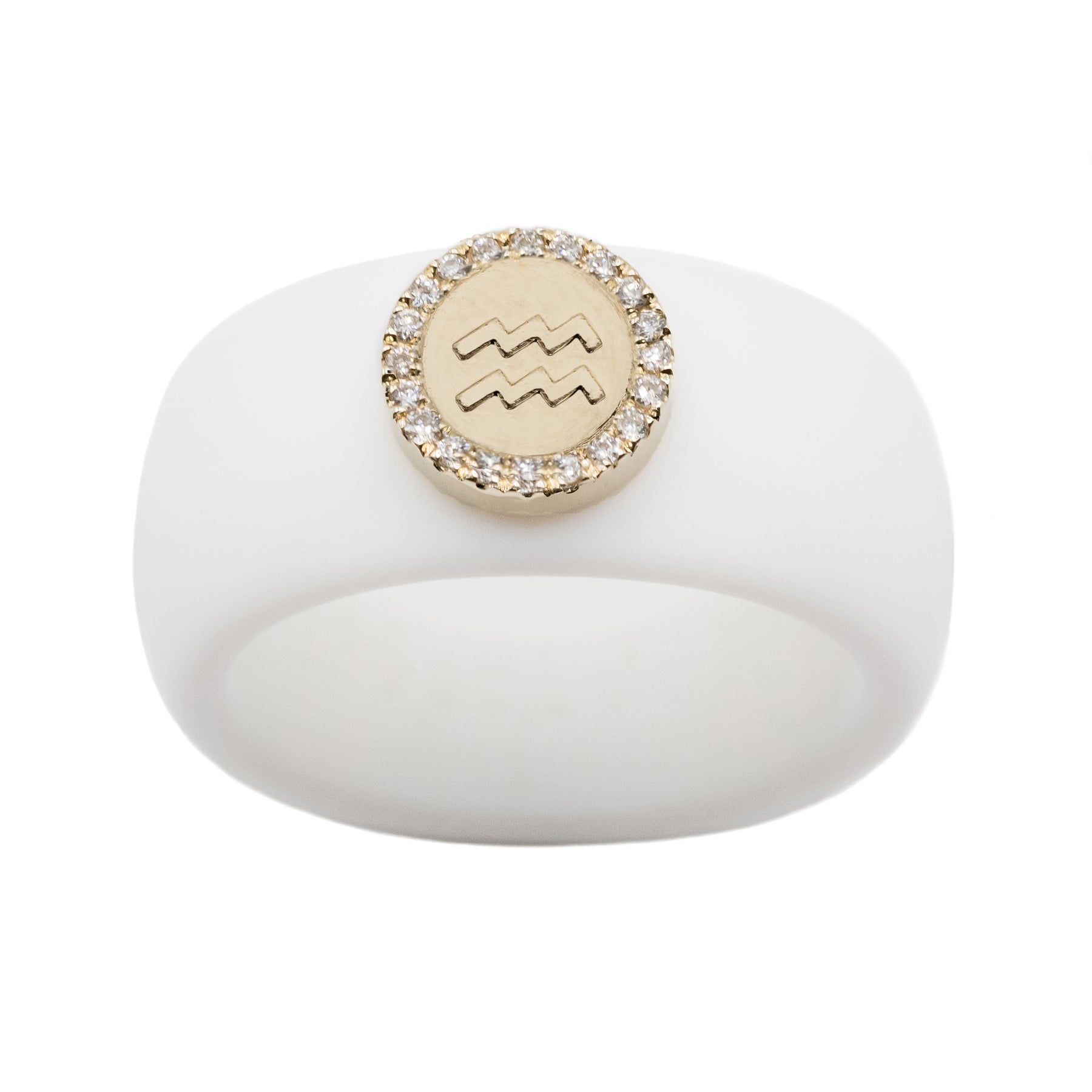 This zodiac symbol of 14K yellow gold is embellished with 0.06ct. diamonds (SI Clarity, G/H Color) and can be paired with your chosen 8.7mm silicone band in hues of black, white, nude, or Sakura pink.