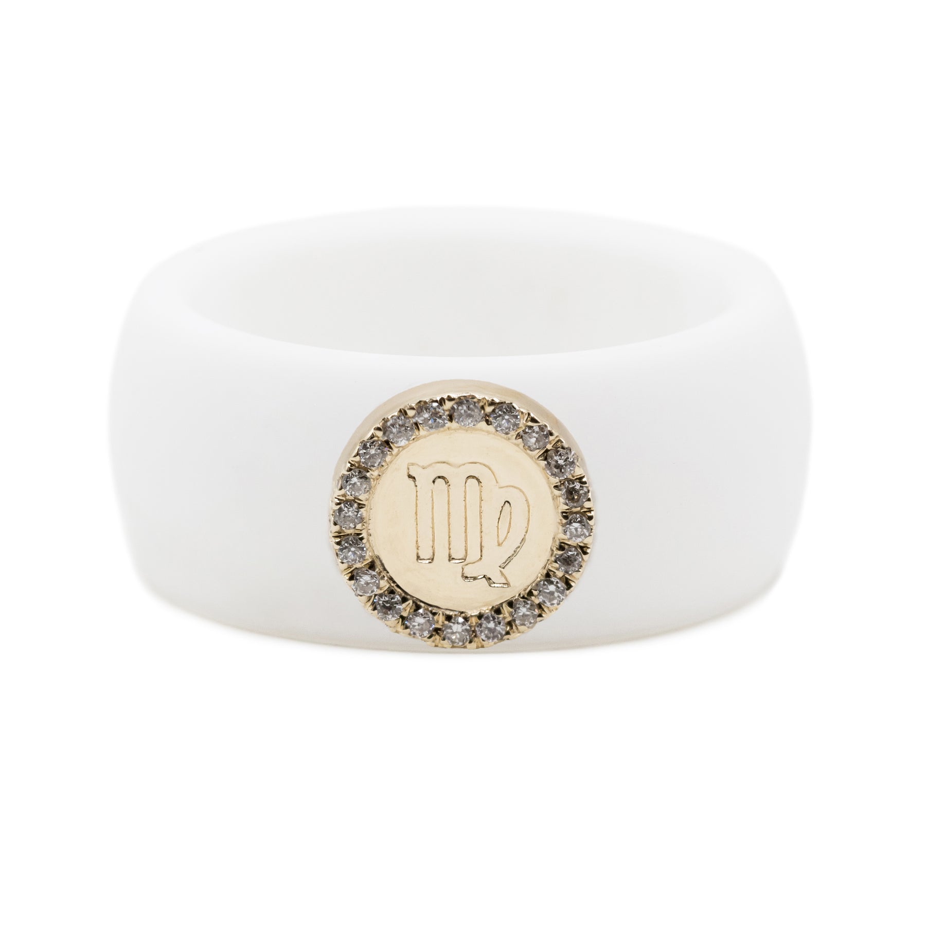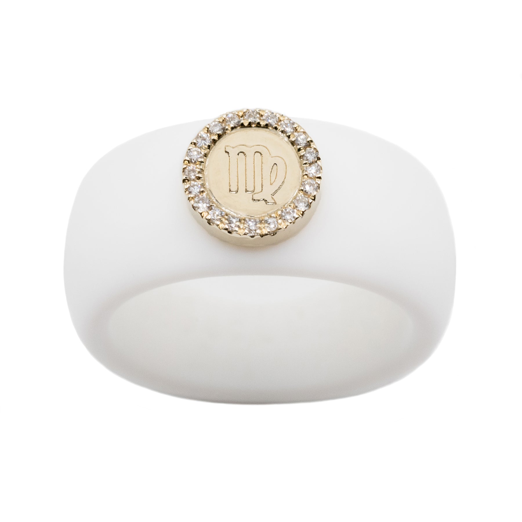 This zodiac symbol of 14K yellow gold is embellished with 0.06ct. diamonds (SI Clarity, G/H Color) and can be paired with your chosen 8.7mm silicone band in hues of black, white, nude, or Sakura pink.