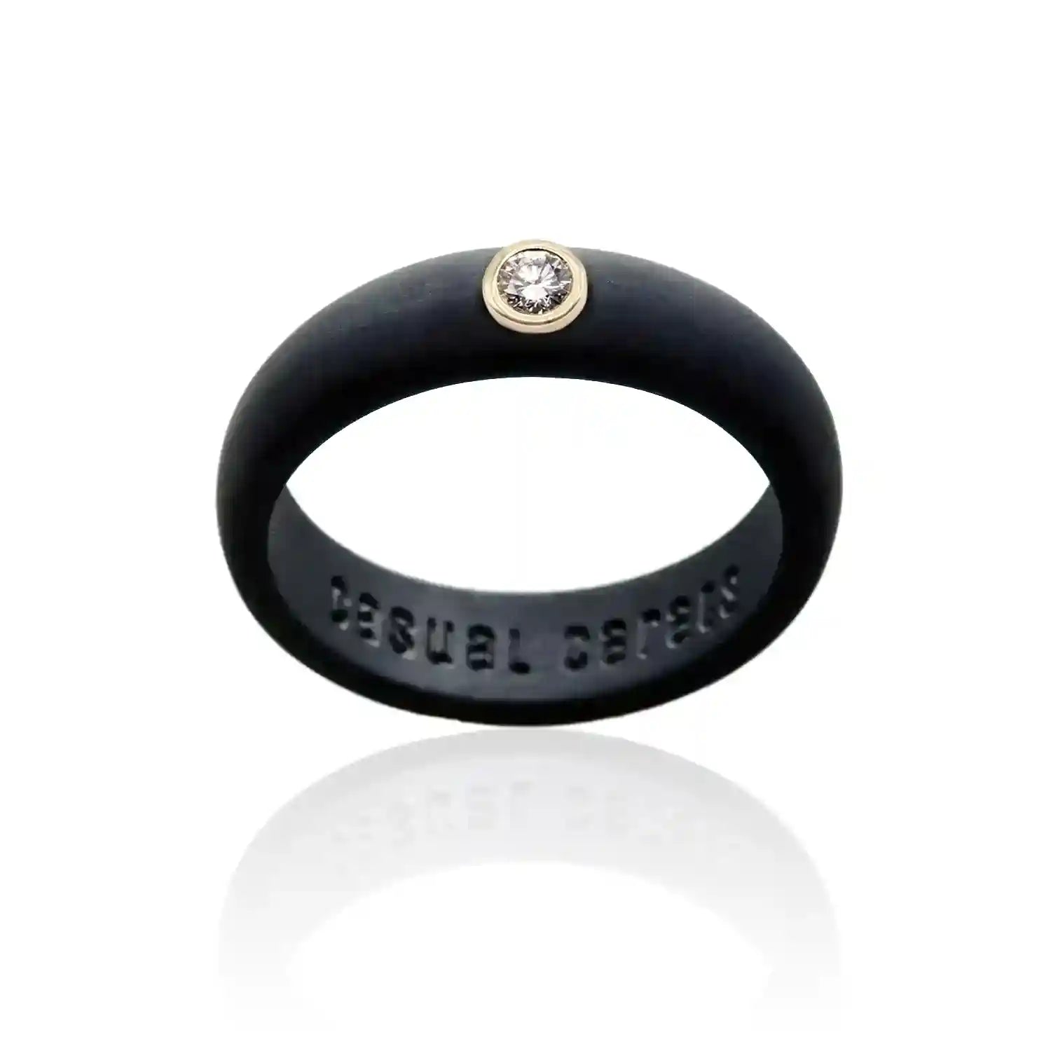 Silicone band 5.7mm wide set with a 14K yellow or white gold tubing that is set with one full cut diamond