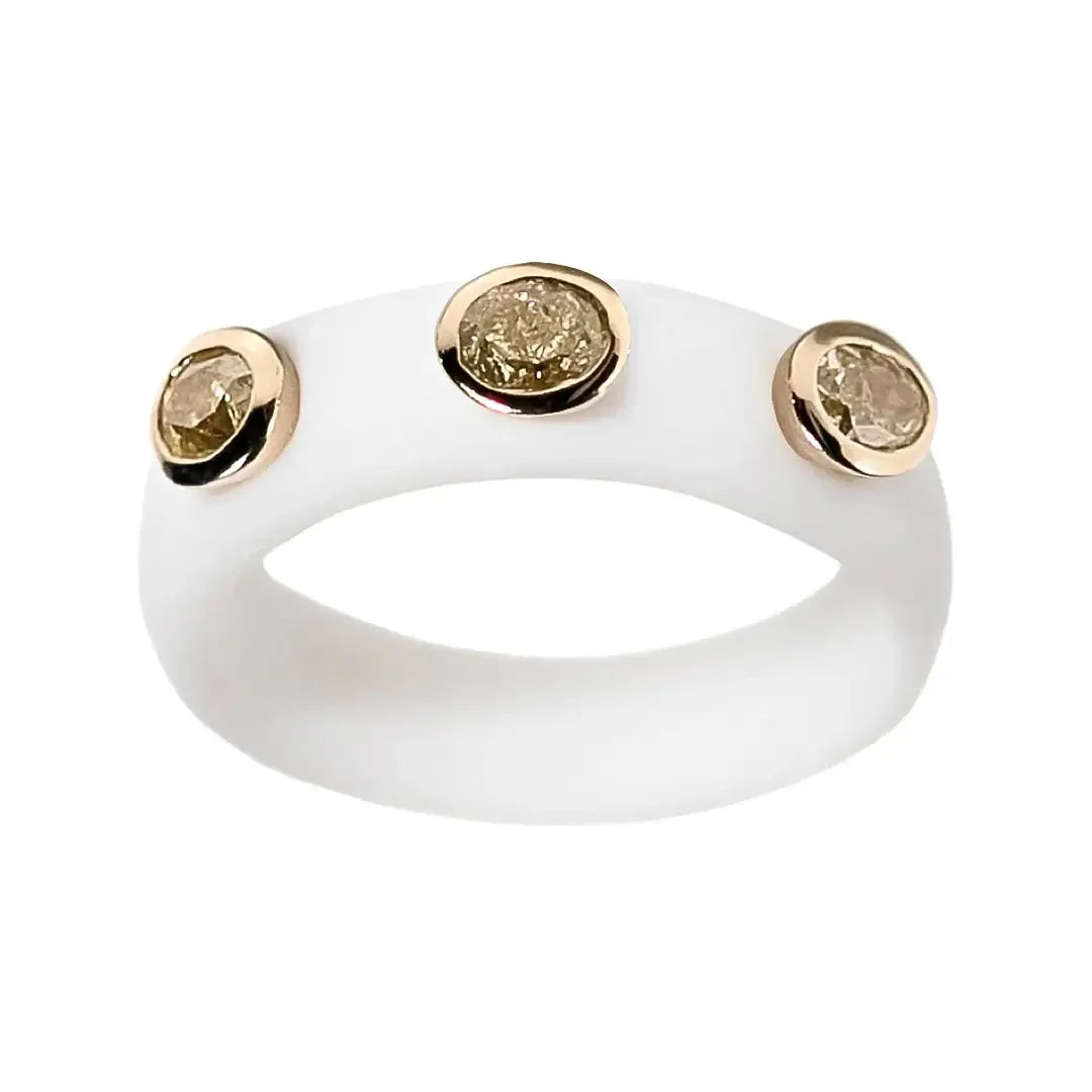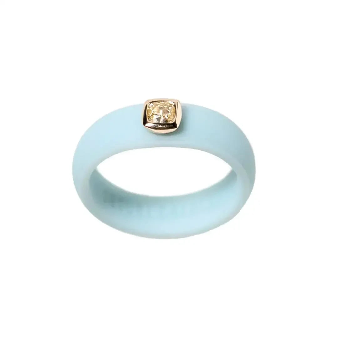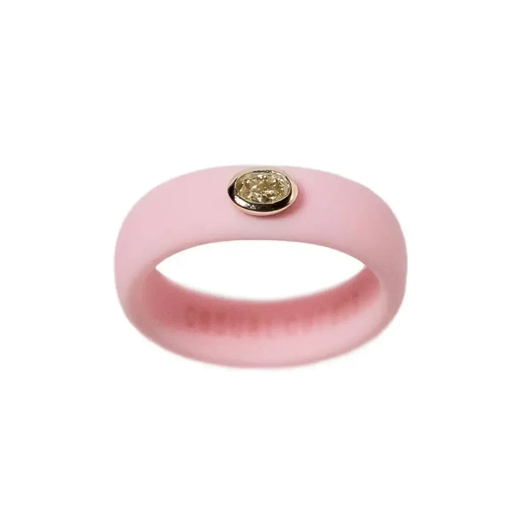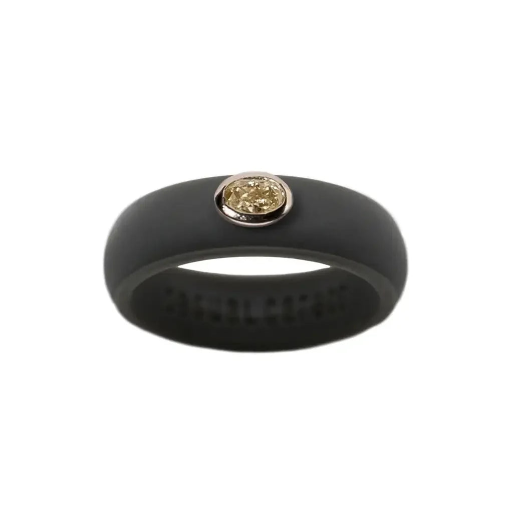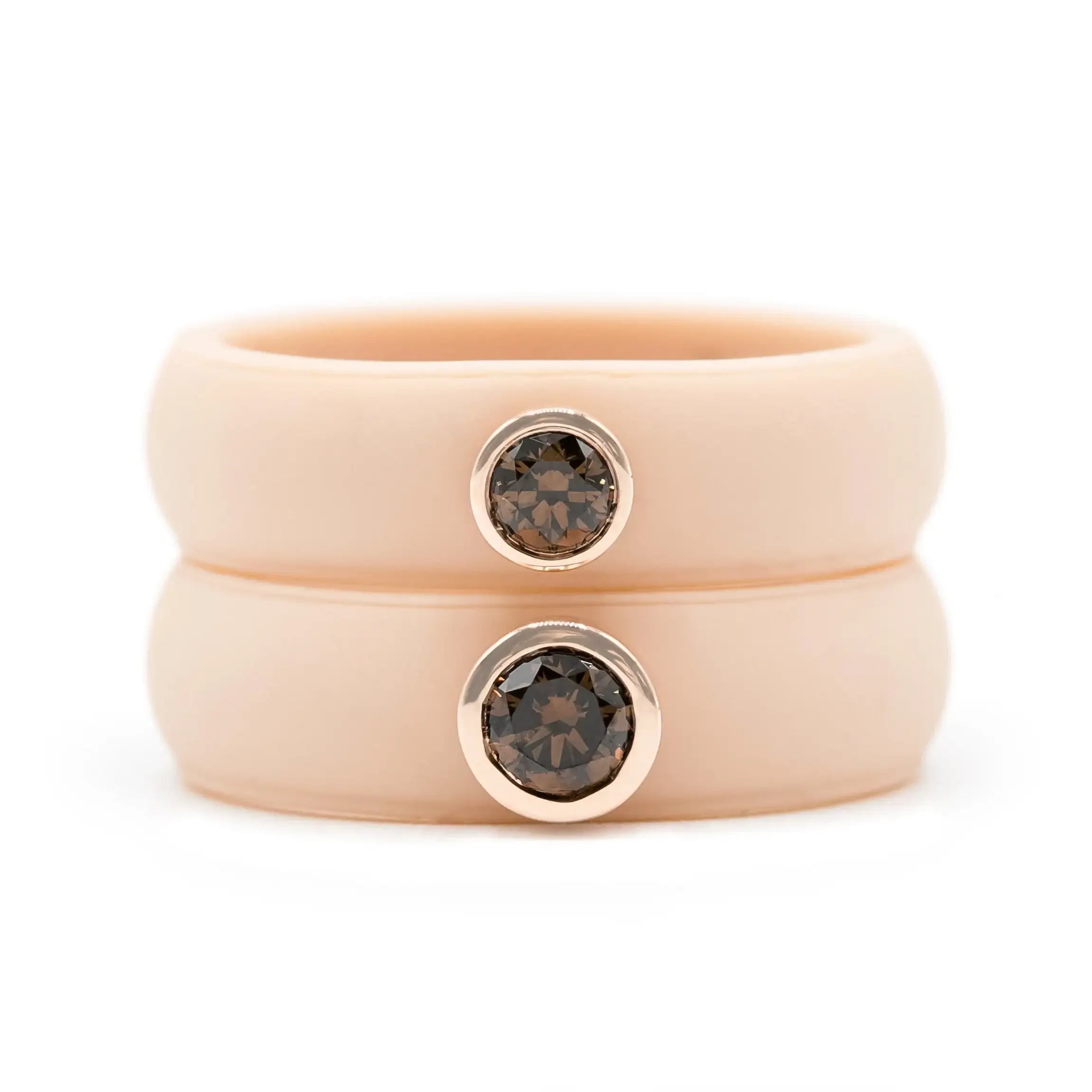 Each silicone diamond ring features genuine cognac diamonds set in luxurious 14K rose or yellow gold, creating a sophisticated contrast against your choice of silicone band colors. The warm brown tones of natural diamonds offer something different from traditional white stones—they're earthy, elegant, and surprisingly versatile.