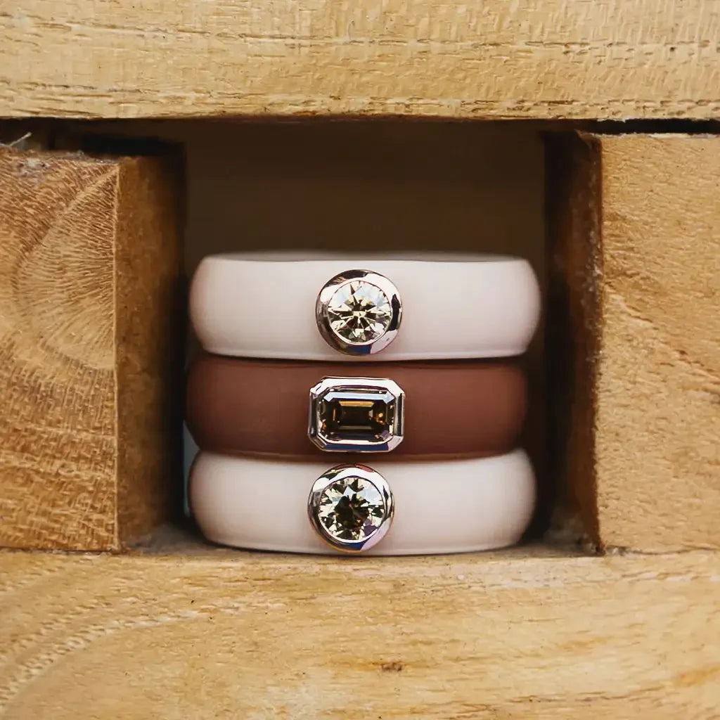 Making your silicone diamond ring uniquely yours starts with choosing the perfect combination of elements. Our cognac diamond collection offers several ways to create a ring that matches your personal style and preferences.