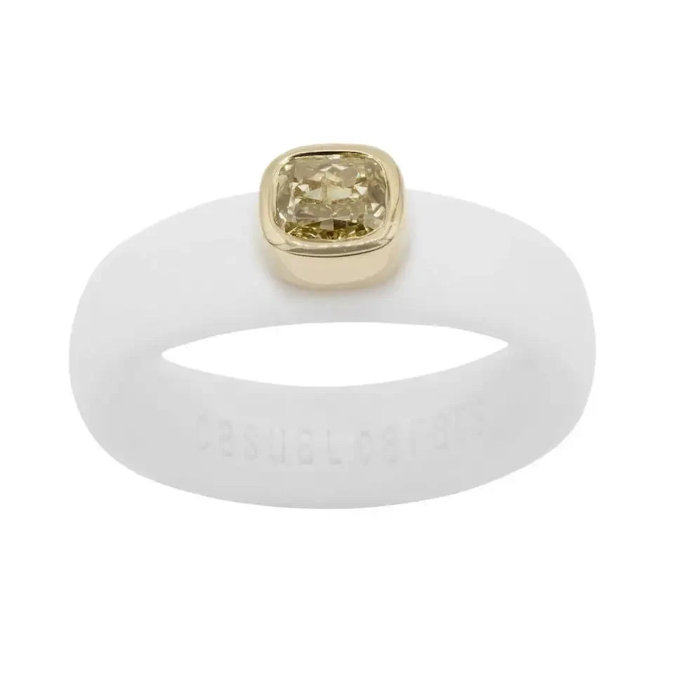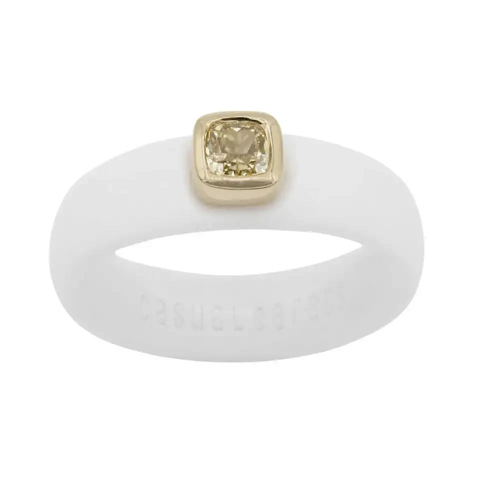 Rose gold settings enhance the diamond's golden undertones, while yellow gold creates a harmonious blend of warm metals. Pair your silicone diamond ring with band colors like Nude, Champagne, or Bronze for seamless elegance, or choose contrasting White for a striking modern look. Every ring in this collection transforms everyday moments into opportunities for quiet luxury.