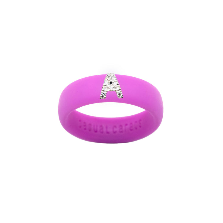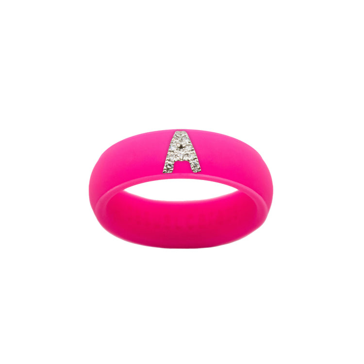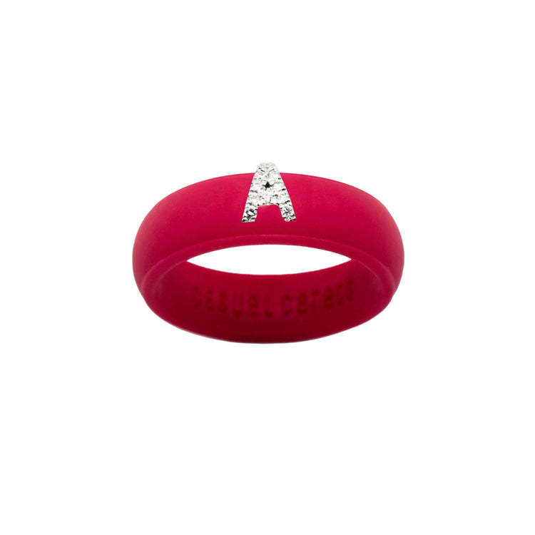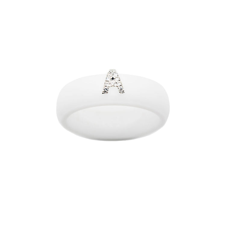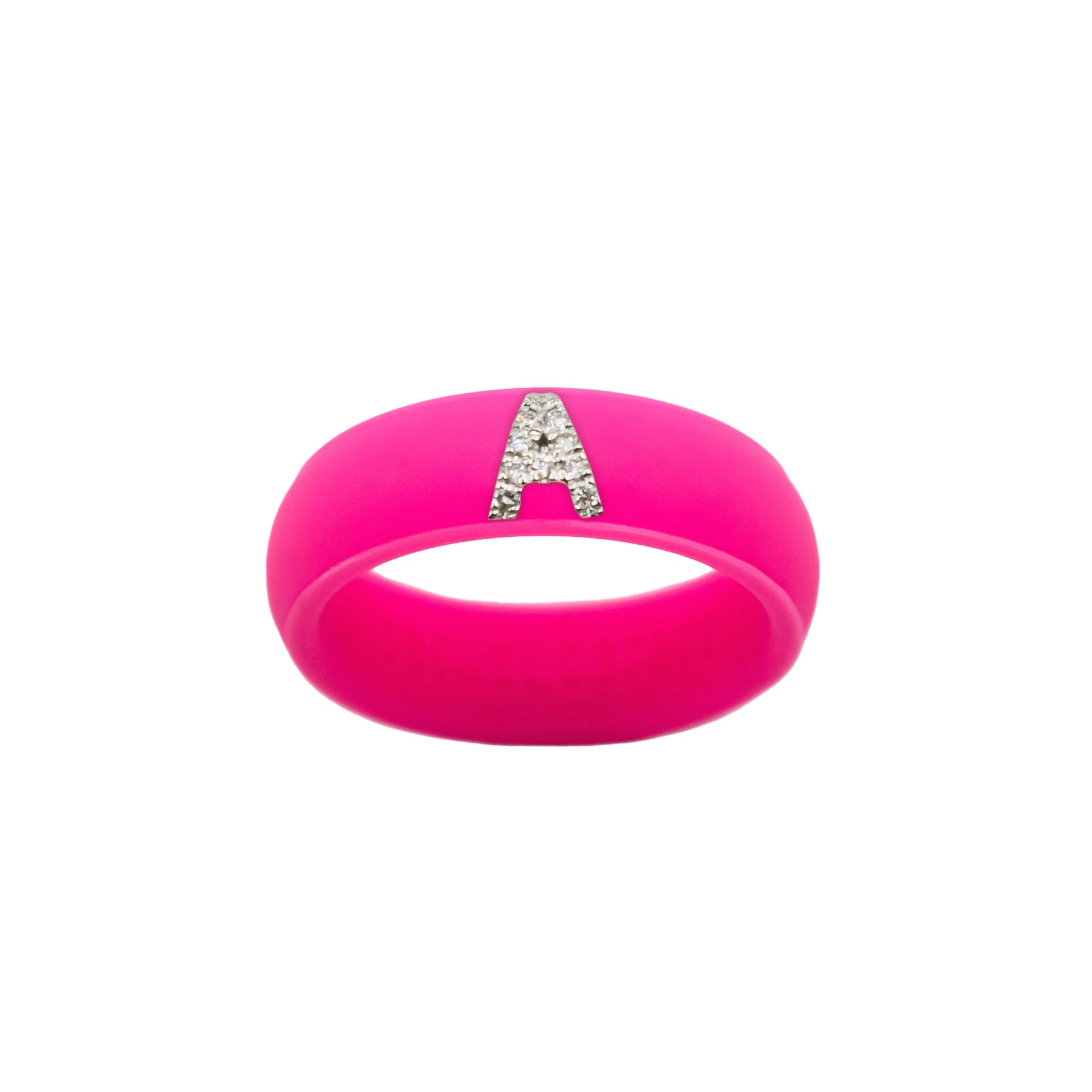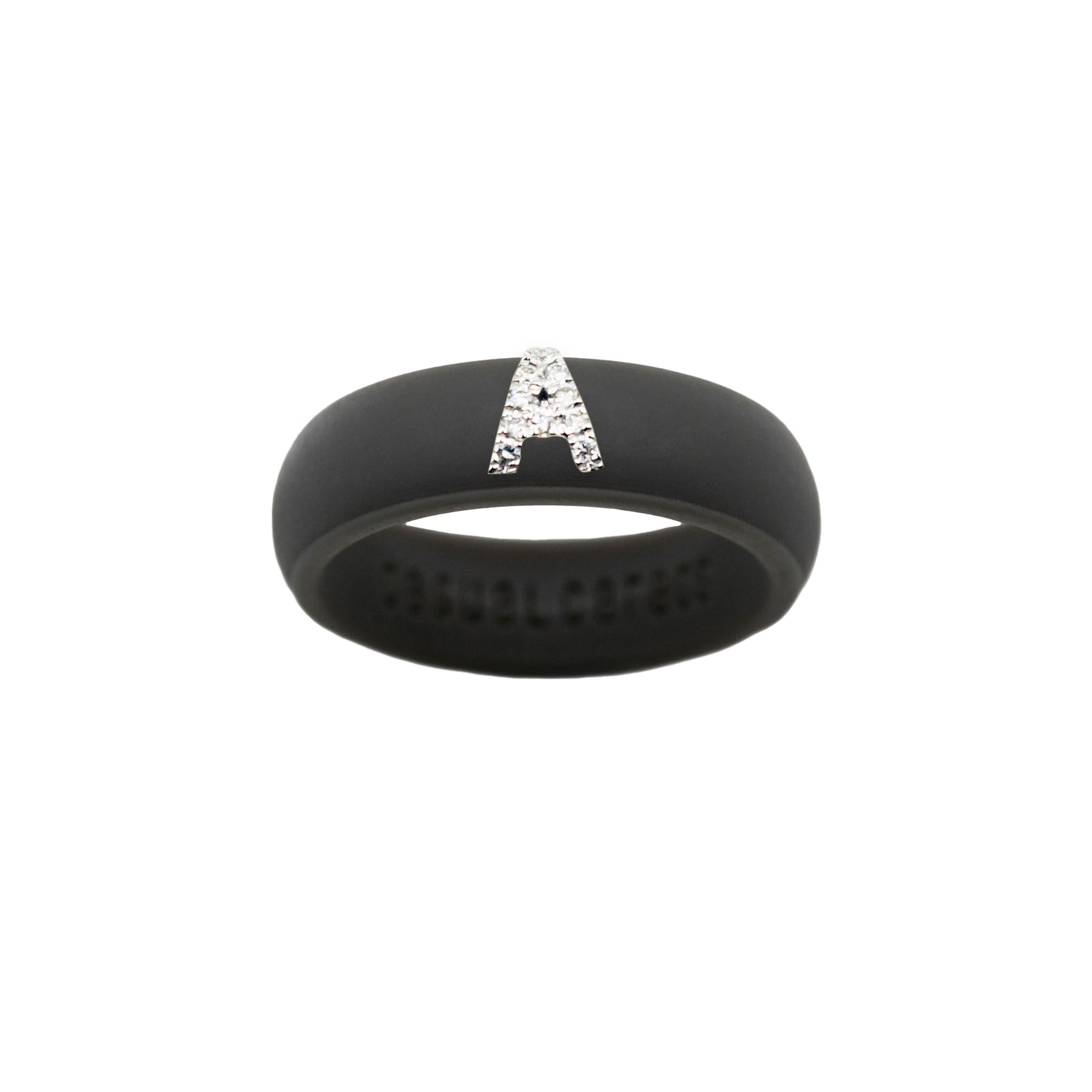 Express yourself with this unique and dazzling diamond initial silicone ring. Choose the silicone color of your choice to make this piece truly your own. Feel beautiful, confident and inspired when you wear this luxurious and stylish accessory. Make your mark with the “A” Diamond Initial!