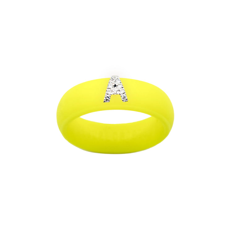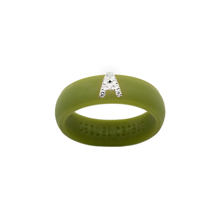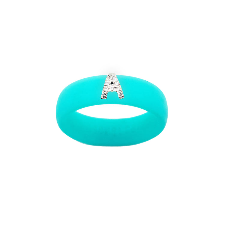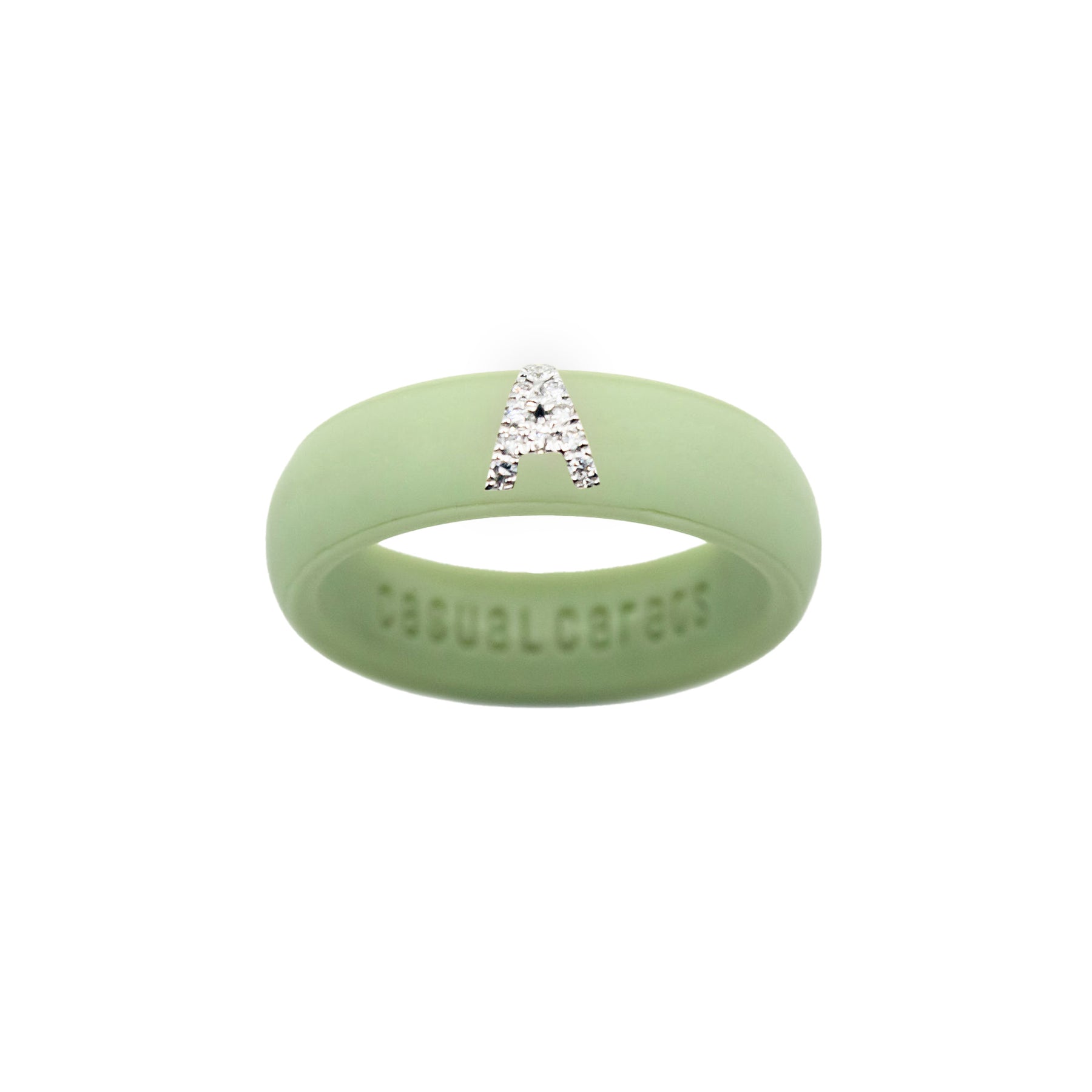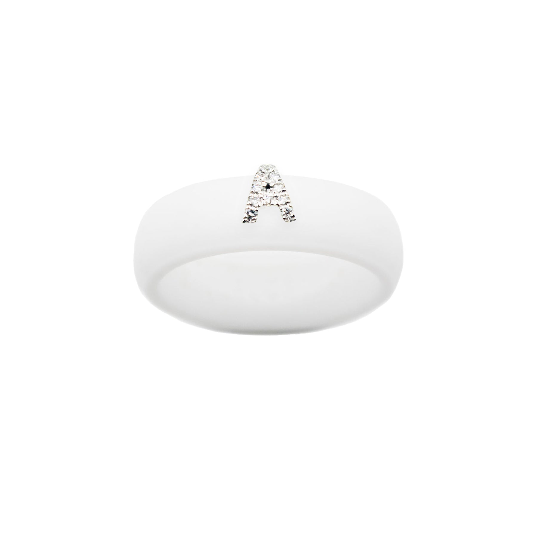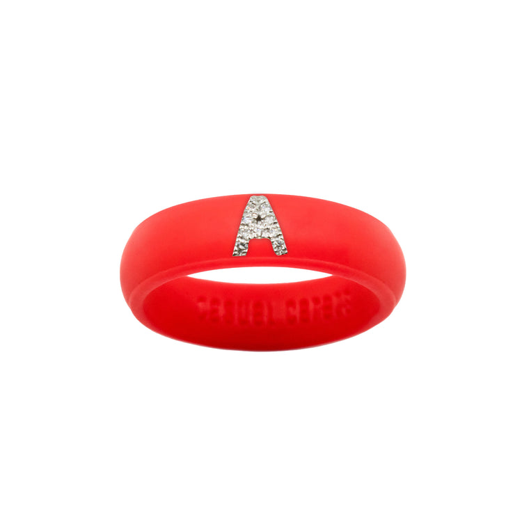 Express yourself with this unique and dazzling diamond initial silicone ring. Choose the silicone color of your choice to make this piece truly your own. Feel beautiful, confident and inspired when you wear this luxurious and stylish accessory. Make your mark with the “A” Diamond Initial!